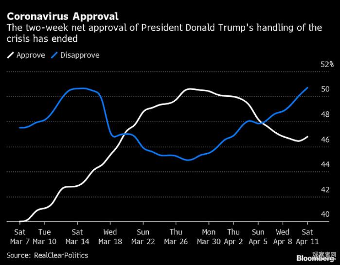 需要注意的是,美国联邦政府的领导地位在此次抗疫新冠肺炎中没有得到体现;相反,白宫推诿责任,已经试着把锅甩给中国、世卫组织以及地方政府。这导致的后果很明显:彭博社援引民调机构RealClearPolitics数据显示,2周内认为“特朗普抗疫无能”的人已超过50%,认为其“抗疫有方”的人下降至46%左右——走势和2周前完全相反。3月底朗普支持率的上升,可以理解为美国总统的“选举活动刺激作用”、以及美国人在灾难中的“聚旗效应”。
