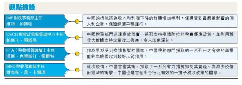 IBFD是國際稅收專業知識和獨立稅務研究領域享有盛名的服務提供商,其產品涵蓋國際稅收各個方面。IBFD稅收服務部主任維克多?萬?卡爾瑪教授也表示,疫情發生以來,中國政府迅速行動,對受疫情影響嚴重的企業和個人提供一攬子優惠政策,其中包括減免企業所得稅、個人所得稅、社保費、增值稅,延長納稅申報期限,對受疫情影響較重而未能完成申報的納稅人不加收滯納金且不給予行政處罰等。此次疫情,中國首當其衝,採取了一系列有力措施抑制其蔓延。為減少疫情對經濟的衝擊,中國也是首個出台行之有效的一攬子稅收政策的國家。