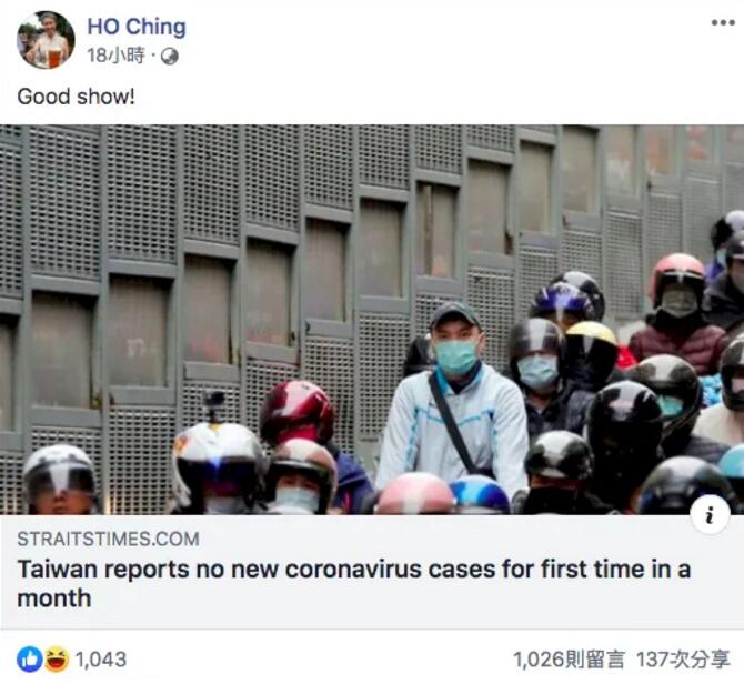当天,是台湾地区36天来首次新冠病例0新增,何晶分享相关新闻的同时,送上了“Good show”的评论。但这短短几个字,台湾网民又争论起这是在庆祝还是在讽刺台湾“作秀”。