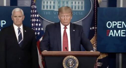 特朗普15日在記者會上說,美國疫情防控措施「顯然正在見效」,「我們已經越過峰值」。