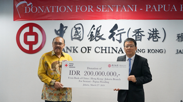 2018年底,印尼發生大海嘯,為對災區及時伸出援手,中銀香港向印尼紅十字會兩次捐贈各2億印尼盾,救助受嚴重海嘯及洪災影響的災民。其後又於老撾中南部水災中,向老撾紅十字會捐款,救助受當地受水災影響的老撾人民,協助他們渡過難關。去年在柬埔寨城市西哈努克的坍塌事故中,中銀香港亦有捐款支援當地政府開展各項救援及善後工作。