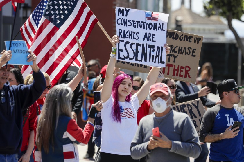 不少示威者认为,加州没有任何理由颁布“居家令”,并对“居家令”的举措表现出厌恶。示威者同时认为,新冠病毒并不会给加州造成毁灭性的打击,医院也没有因为新冠肺炎疫情而出现任何瘫痪状态。不少示威者还认为,“居家令”的颁布是在扼杀生意,抢夺劳动者饭碗的行为。
