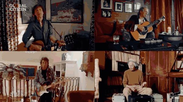 滚石乐队(The Rolling Stones)隔空聚首,表演1969年的经典之作《You Can't Always Get What You Want》,屏幕上四位乐队成员依次出现,不知屏幕后有多少歌迷热泪盈眶。