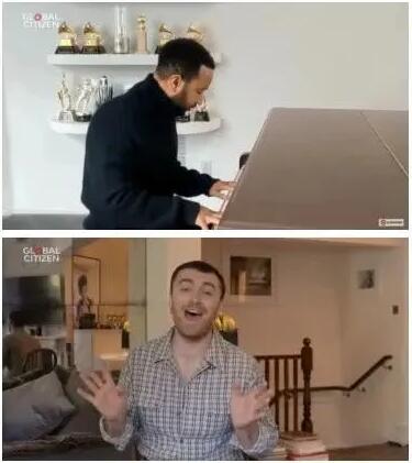 约翰·传奇和萨姆·史密斯(Sam Smith)云端合唱《Stand by Me》,身后作为背景的奖杯,不动声色地提醒观众两位歌手“格莱美大赢家”的身份。