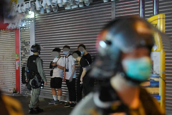 警方其後在又新街舉起藍旗,警告非法集結人群離開,並設置封鎖綫,截停至少20、30人,隨後在阜財街又截查多人。