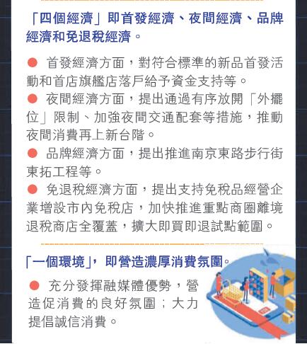 「四個經濟」即首發經濟、夜間經濟、品牌經濟和免退稅經濟,這是「上海購物」品牌和國際消費城市建設的亮點特色,也是推進消費市場提質升級、更好滿足多元化消費需求的重要抓手。其中,夜間經濟是國際消費城市的重要組成部分,《措施》提出通過有序放開「外擺位」限制等措施,推動夜間消費再上新台階。