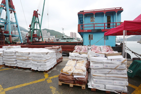 【香港商報网訊】記者區天海報道:海關破獲本年最大宗海路走私凍肉案。前日出動逾百人在機場三跑工程對開海面截查2艘躉船,檢獲162噸走私凍肉,市值約650萬元,行動中拘捕15名男子。海關相信因內地近年嚴格實施外地凍肉進口檢驗措施,走私集團覷準機會以躉船作為海上儲存及分貨點,並利用前晚雨風作「掩護」進行走私。由於搬運過程中任由凍肉「風吹雨打」,衛生情況非常惡劣。