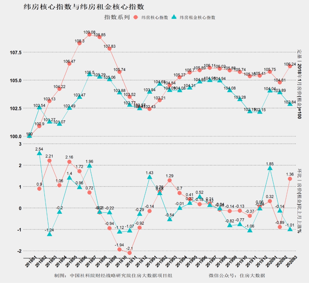 《报告》分析,从全国看,全国市场基本恢复,核心城市房价稳中略升,成交量大体恢复。反映全国24个核心城市房价总体变化的纬房核心指数显示,全国核心城市房价出现恢复性回升。2020年3月,核心城市综合房价已经高过了2020年春节前的水平,同时也高于2019年全年最高房价,但是要低于2018年中的房价水平。