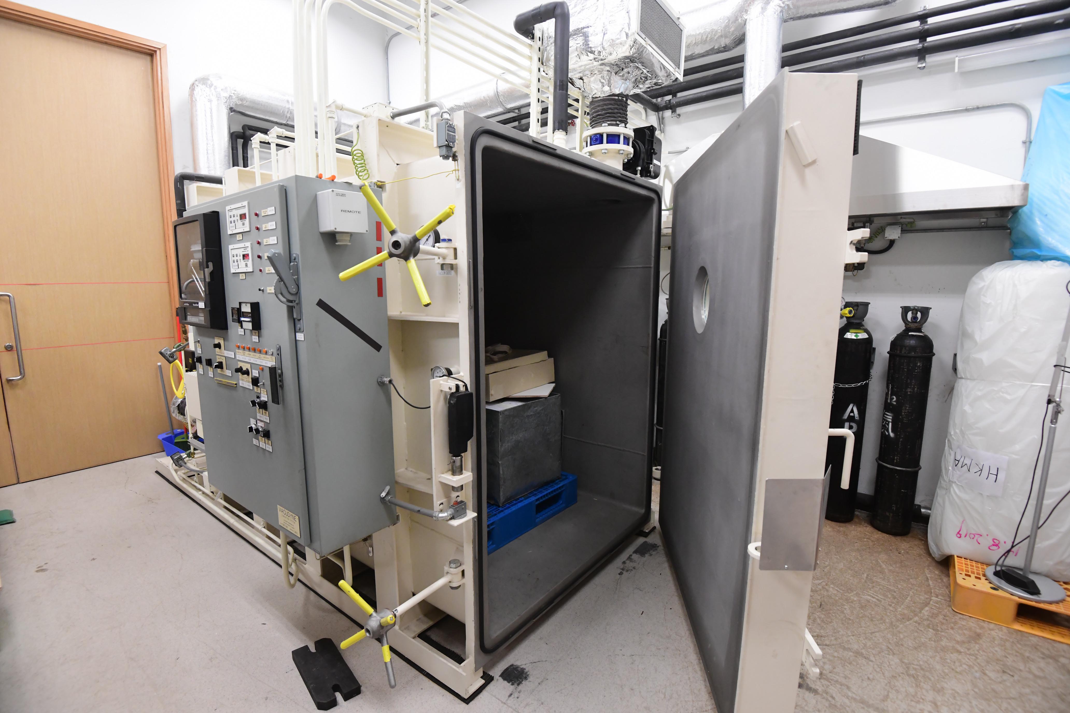 若書畫、手稿等文物遇上被蟲蛀侵蝕,又該如何修復?實驗室內有一間全港最大的「氮氣滅蟲室」,可利用氮氣做成低氧環境進行滅絕害蟲的工作。「書籍、衣服或木都是比較容易有蟲患的文物,通常不會噴含化學物質的殺蟲劑,利用氮氣,文物上的害蟲及蟲卵便會因缺氧而死亡。」