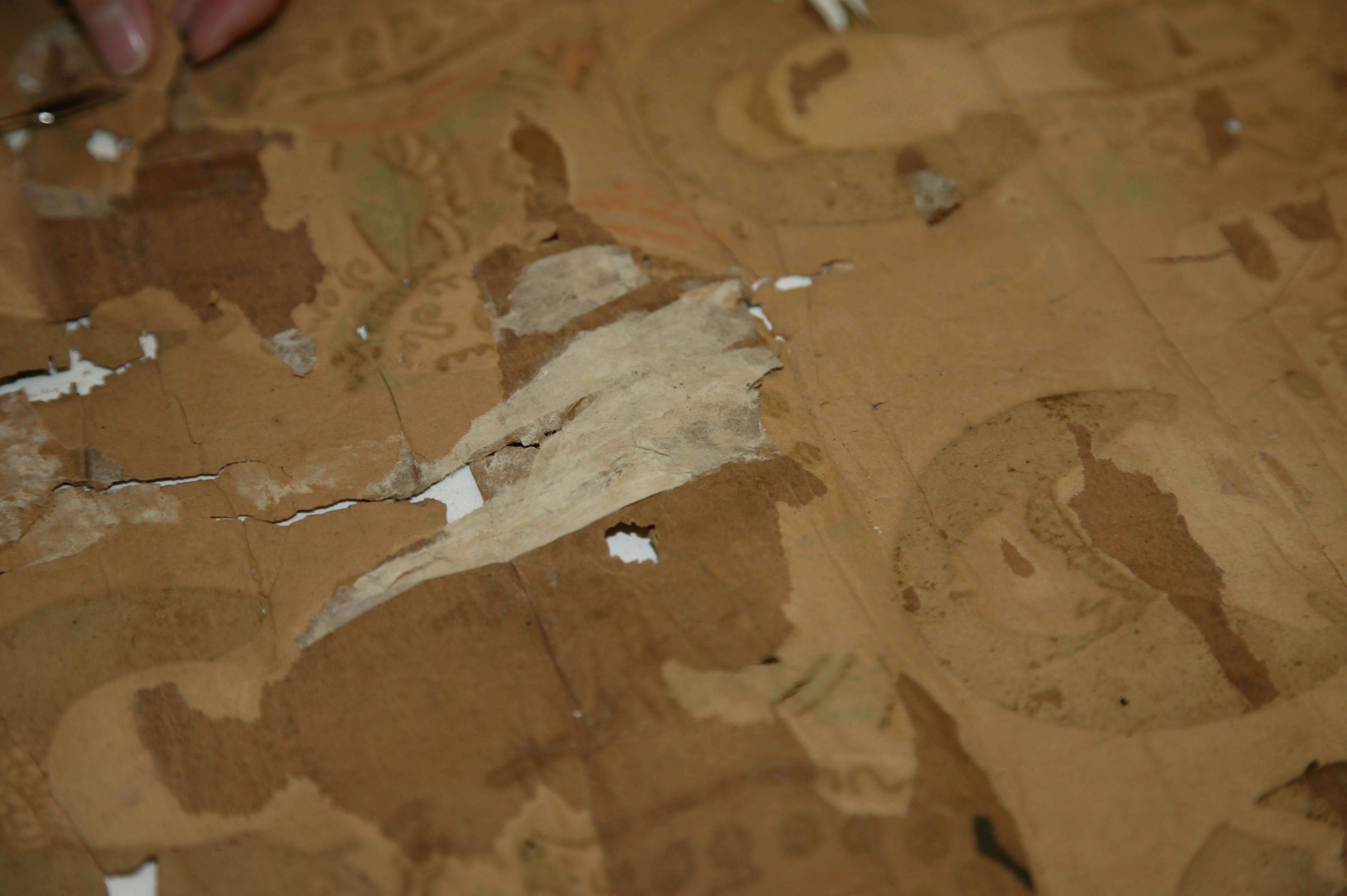 對於印象較深刻的個案,鄧汶慧分享博物館曾經收到大批佛山木版年畫。木版年畫是中國傳統民間藝術,有逾千年歷史,清代中晚期尤其鼎盛,多用於過年時張貼家中,烘托熱鬧喜慶的氛圍,題材通常有關吉祥、民俗、戲曲故事等。年畫內的人物、故事,因地域不同而各具特色,其中被稱為「中國四大木版年畫」之一的佛山木版年畫,因色彩對比強烈,人物造型生動,藝術與實用性兼備,於2006年被列入第一批國家級非物質文化遺產名錄。鄧汶慧憶述當年需要修復的佛山木版年畫,出產自上世紀40至50年代,已經損毀嚴重,「年畫尺幅甚大,不但曾被修補過,還有皺摺、污迹等問題。當時需要拆下裝裱的部分,直至剩下畫心才能進行修復,光是拆除便花費不少功夫。」拆除後的年畫幾乎散架,不僅要將整幅畫托底,還要以傳統工藝的黑、黃、紅、綠四色木版套印顏色。裝裱書畫,一般使用質量較好的綾邊(有花紋的絲織品),但年畫則多用紙邊裝裱,「為了還原舊貌,我還特意製作了一批紙邊用作裝裱。」從破碎再到恢復完整,經歷了幾個月時間,對於當時初學裱畫的鄧汶慧來說格外具挑戰性,也鍛煉出她的木版年畫修復技術。