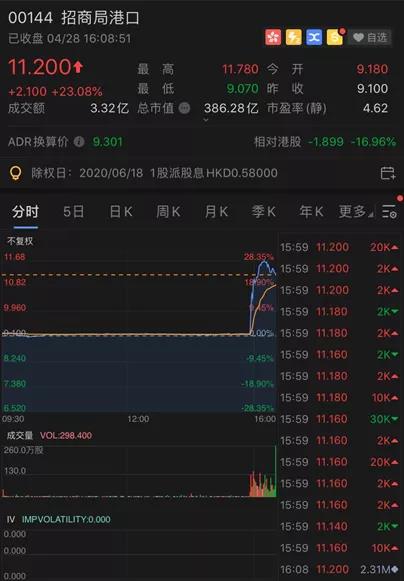 此消息一出,招商局港口的股价应声上涨,涨幅一度达到29.93%,临近收盘股价有所回落,但收盘涨幅依然高达23.08%。