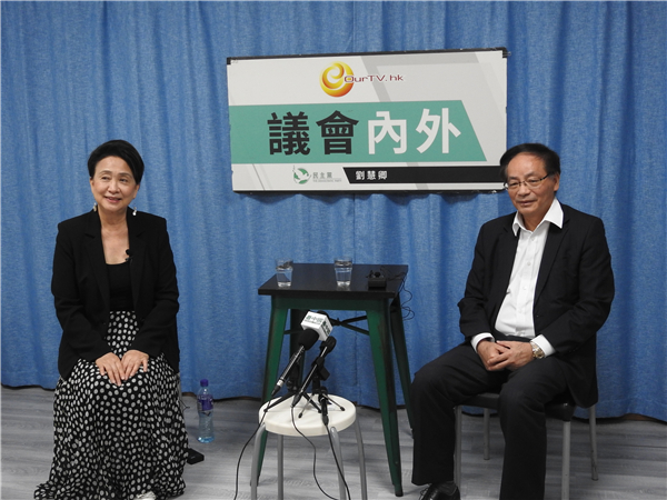 葉國謙(右)接受民主黨前主席劉慧卿訪問,呼籲反對派停止 「攬炒」 心態。