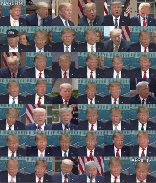 《纽约时报》回顾了疫情期间(从3月9日到4月中旬),特朗普在白宫简报会及其他场合发表的针对疫情的所有言论,超过26万个单词。记录显示,他传达的信息出现多次重复,显示出总统的傲慢和对疫情蔓延的牢骚。