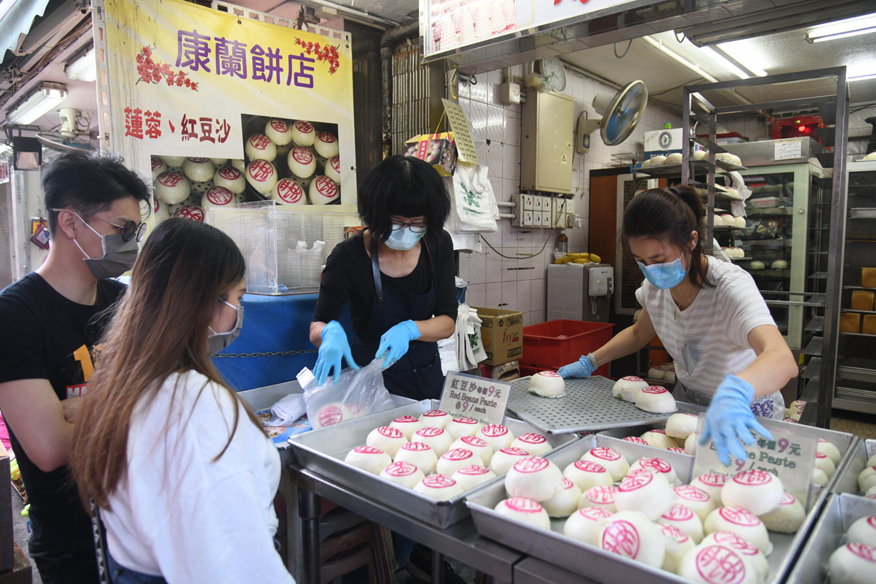 油尖旺一帶的人流亦不少。旺角花墟難得企滿來買花的市民,部分花店亦推出優惠,不難見到市民左擁右抱玫瑰及盆栽。至於登打士街、花園街、彌敦道一帶,則有不少「吉舖」,雖然人流較多,真正消費的人卻只得零星幾個,昔日大排長龍的飲料店亦不用排隊,可立即下單;與上水不同,這裏藥房最熱鬧,每有防疫用品則吸引一堆人在門口圍觀,但隨本地連續幾日零確診,買口罩的人亦不多。
