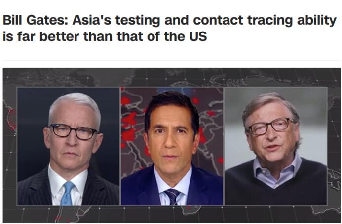 【香港商报网讯】美国有线电视新闻网(CNN)4月30日与美国盖茨基金会联席主席比尔·盖茨视频连线。盖茨在采访中表示,美国进行大规模检测和追踪接触者的能力还没有达到几个月来一直与疫情作战的亚洲国家的水平。
