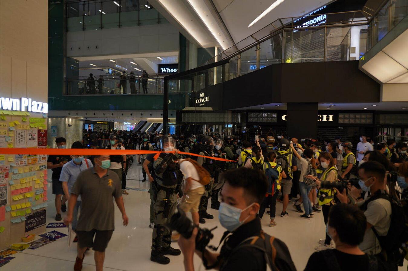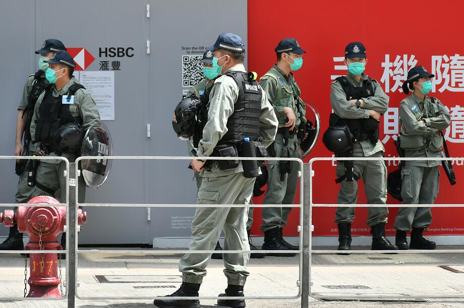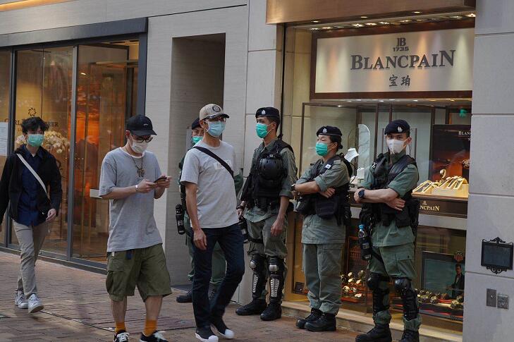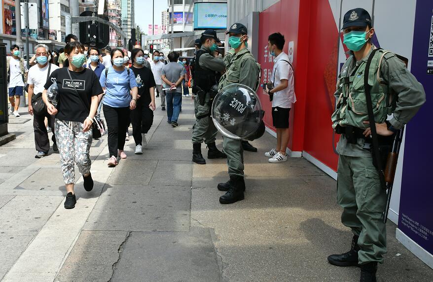 警方上午在港鐵中環站巡邏並截查途人,觀塘站大堂下午也有防暴警在場進行截查工作。在西環中聯辦大樓附近,中午起有防暴警戒備,銅鑼灣崇光百貨一帶則有防暴警巡邏。