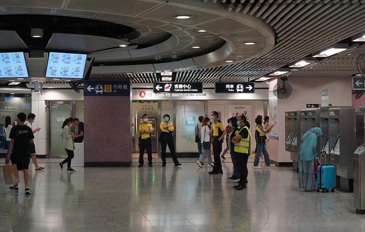 銅鑼灣地鐵站內,多名港鐵職員及保安出動,在站內觀察及維持秩序。