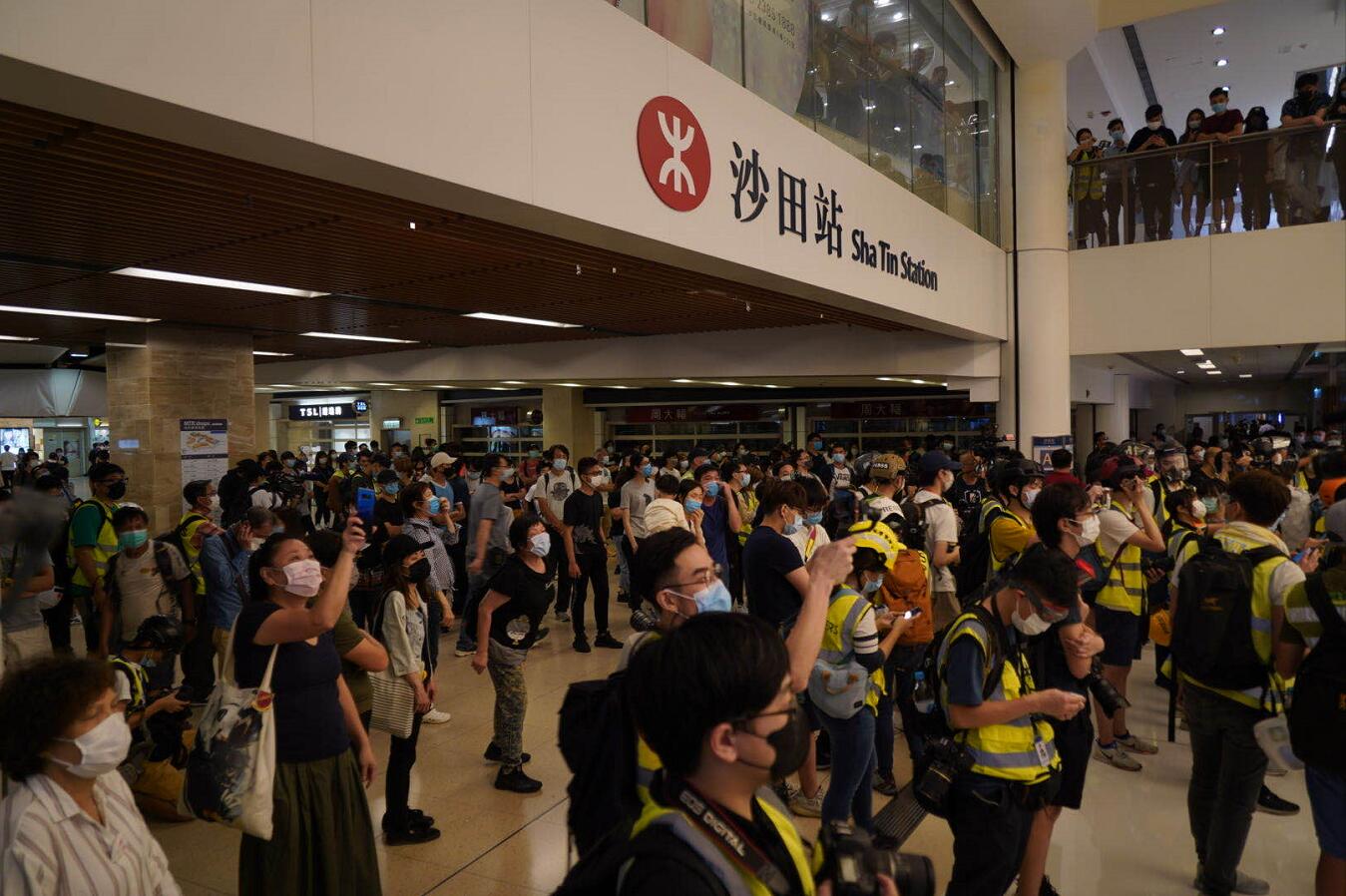 傍晚时分,有近百網民在沙田新城市廣場發起集會,其中很多都是想“抢新闻”的传媒记者,警方到場拉起封鎖線,勸阻人群散去。