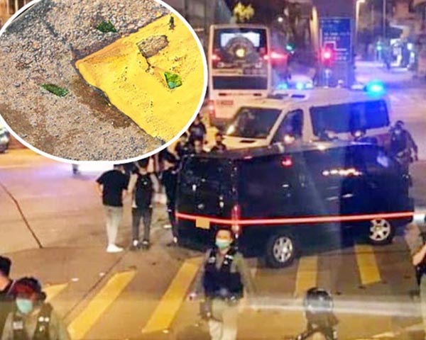 警方5月1日晚11時許在旺角彌敦道近界限街交界,發現有4人投擲汽油彈及插有鐵釘的膠管,之後拘捕一名15歲少年。 網絡圖片