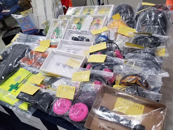 ▲警方昨晚召開記者會交代旺角縱火案,檢獲多件燃燒瓶、白電油、護目鏡等。