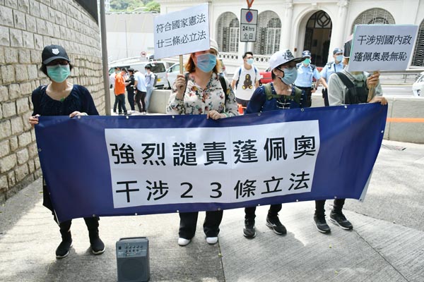鄧家彪指出,美國政府和國會高層多次高調接見香港反對派頭目和議員,插手香港事務,2014年的非法「佔中」、去年至今連串黑暴,一直見到美國這隻「無形之手」。為保障國家和社會安全,免受外國勢力擾亂香港,23條一定要立法,絕對不能退讓。他續說,隨着美國疫情惡化,蓬佩奧近月多次發言批評中國和干涉香港事務,明顯是想推卸抗疫失誤責任,轉移視線。