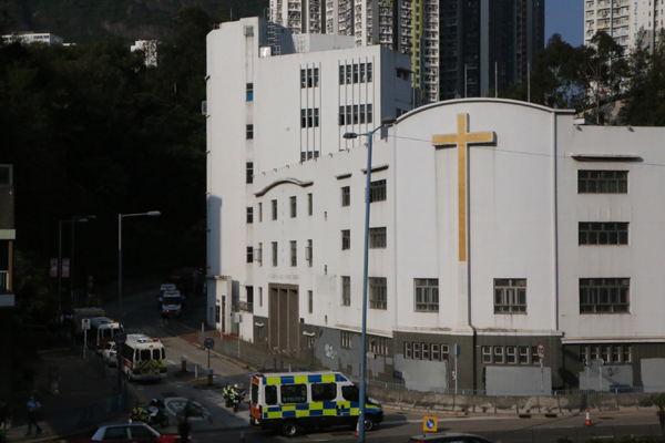警方封鎖現場,調查聖若瑟英文中學舊校舍發現懷疑爆炸品。