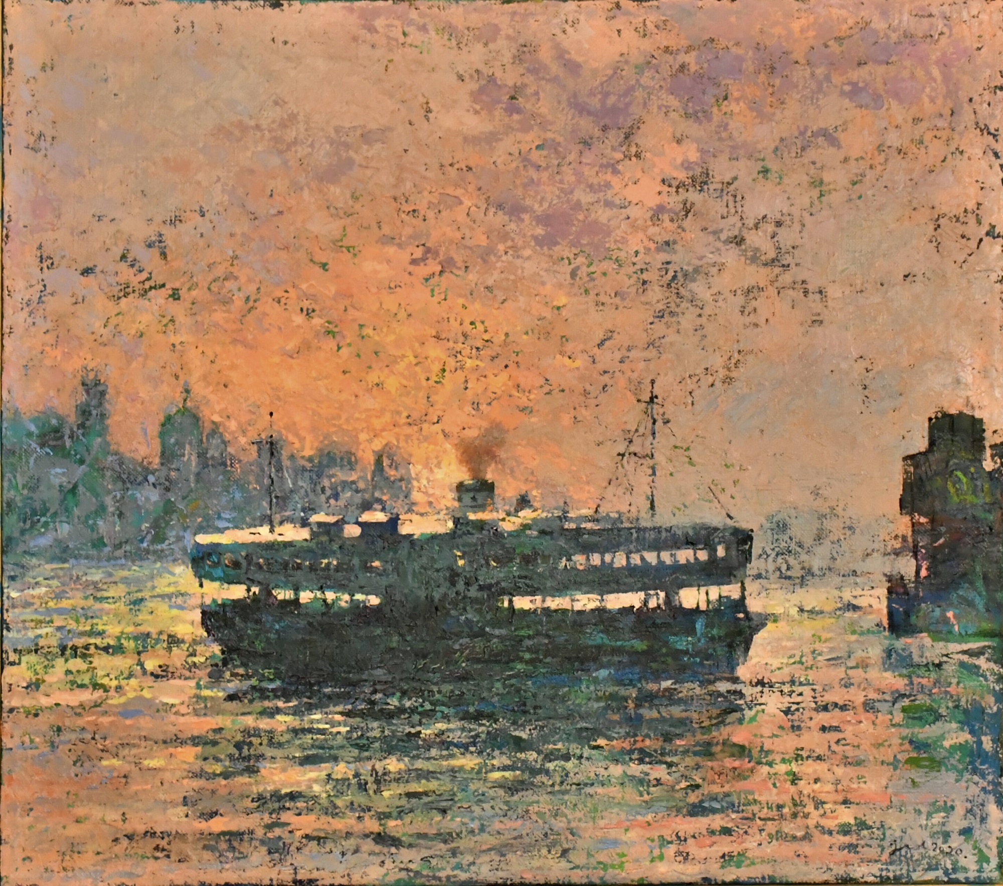 廖井梅作品《夕陽渡》。80×70cm。(馮瀚文攝)