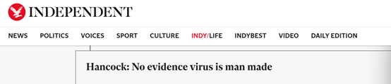 【香港商报网讯】“没有证据表明这(新冠病毒)是一种人造的冠状病毒。我们还没有看到存在这种(病毒与武汉实验室)联系的任何证据。”英国《独立报》消息称,英国卫生大臣汉考克6日接受英国天空电视台采访时表示,没有任何证据表明新冠病毒来源于中国武汉的一个实验室。此前,美国总统特朗普宣称“看过病毒源自武汉实验室的证据”,不过后来他又改口说,自己的意思是病毒“从武汉地区扩散”,而不是确认“源自实验室”。