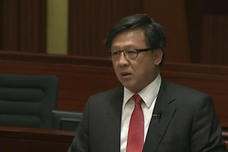 何君堯認為反對派以提出修正案為名,顛覆香港,分裂中國領土。(港台視頻截圖)