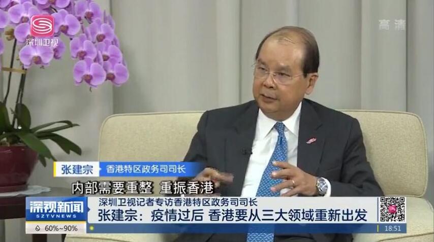 政務司司長張建宗接受《深圳衛視》訪問時表示,希望疫情過後,香港可以重新出發,形容這是一個重大任務,而且極其重要:「重新出發、重新啟動,重新起飛。」他指出,重新出發方面有三大主要領域,第一是香港本身的內部要重整,要做到重振香港;第二是國家市場;第三是海外國際市場。他不諱言,這三個都是要處理的重要板塊:「起飛,一定要三方面一齊起飛。」