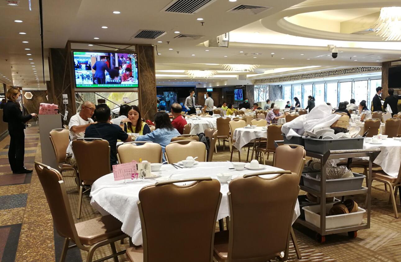 而在旺角一間酒樓,早茶時段每都有客,但受限聚令影響,有食客一家16人需要分兩坐,說雖然要分開坐,但至少可以一齊慶祝,感到開心。酒樓經理說,早茶時段的生意,較疫情下的平日增加約四成,晚上訂亦爆滿,但由於每枱最多只能坐8人,加上市民消費力轉弱,預計整體生意較去年同期下跌三至四成。