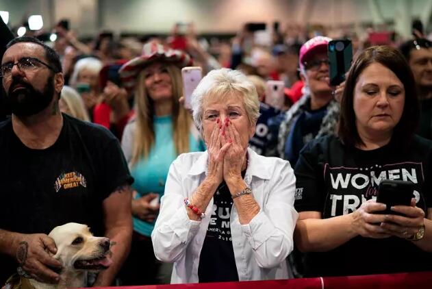 特朗普今年二月份在拉斯维加斯的一场竞选集会(图自:央视新闻)