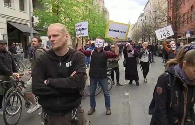 在柏林,抗议者高呼“自由”、“我们是人民”等口号,并与防暴警察发生冲突。警方一度向抗议民众喷洒胡椒喷雾,超30人被捕。