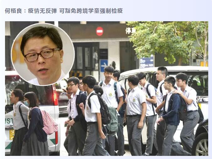 港大感染及传染病中心总监何栢良在一个电台节目指,在疫情没有反弹下,可豁免跨境学童强制检疫。何栢良认为,来往内地和本港人士若要在两地分别检疫14天,是没有需要和费时失事,粤港澳三方应检视现时的检疫措施安排。