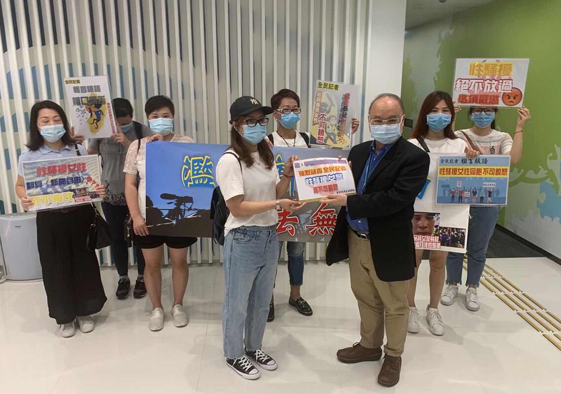 【香港商報网訊】记者何加祺报道:團體「香港女性權益正義群組」今日到平等機會委員會請願,指日前有傳媒在進行直播時,焦點只集中對2位女警評頭品足及揶揄女警身材,並較少拍攝其他在場的防暴警察及現在情況,對此行為表示十分的不滿及強烈譴責。又指,所謂的「全民記者」性騷擾女警員,全程粗口爛舌,拍攝女警胸部,用詞不堪入耳,要求平機會跟進有關事件。