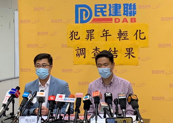 民建聯立法會議員周浩鼎(右)及民建聯副秘書長顏汶羽昨公布犯法年輕化調查結果。記者何加祺攝