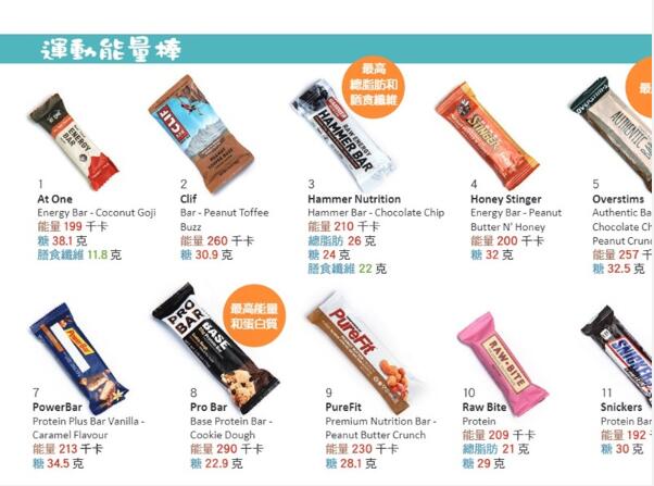 消委會檢視市面上38款能量棒及小食棒產品的營養標籤,發現兩者形貌相似,而且營養成分相近,包括有逾9成樣本屬「高糖」、逾3成屬「高脂」;另有近4成半樣本為「高蛋白質」,以及4成為「高纖」。