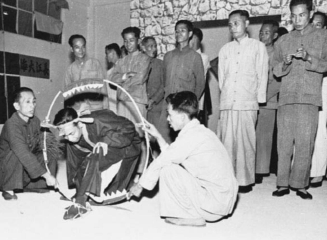 昔日的香港三合會入會儀式,於1950年代由香港 警隊模擬示範。 林建強提供圖片