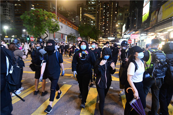 【香港商報訊】記者周偉立報道:《國歌條例草案》昨日恢復二讀辯論,黑衣暴徒於清晨開始在全港多處搞事,包括先阻礙港鐵列車行駛、在過海隧道口慢駛、在鬧市用雜物堵路等,及至立法會開始辯論後,中環、灣仔、銅鑼灣及旺角等地先後有大批「示威者」聚集及叫口號。警方派員到場多次舉起藍旗及黑旗警告無效,繼而以胡椒噴霧及胡椒球彈驅散非法集結群眾,警方共拘捕逾360人。