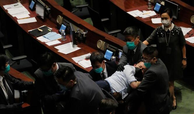 會議暫停近1小時後,「人民力量」陳志勇離開座位,指罵梁君彥,並提出規程問題,梁君彥要求陳志全返回座位,陳志全未有照做。梁君彥決定命令陳志全離場,並再度暫停會議。陳志全被要求離場時激烈掙扎,最終被數名保安抬出會議廳。
