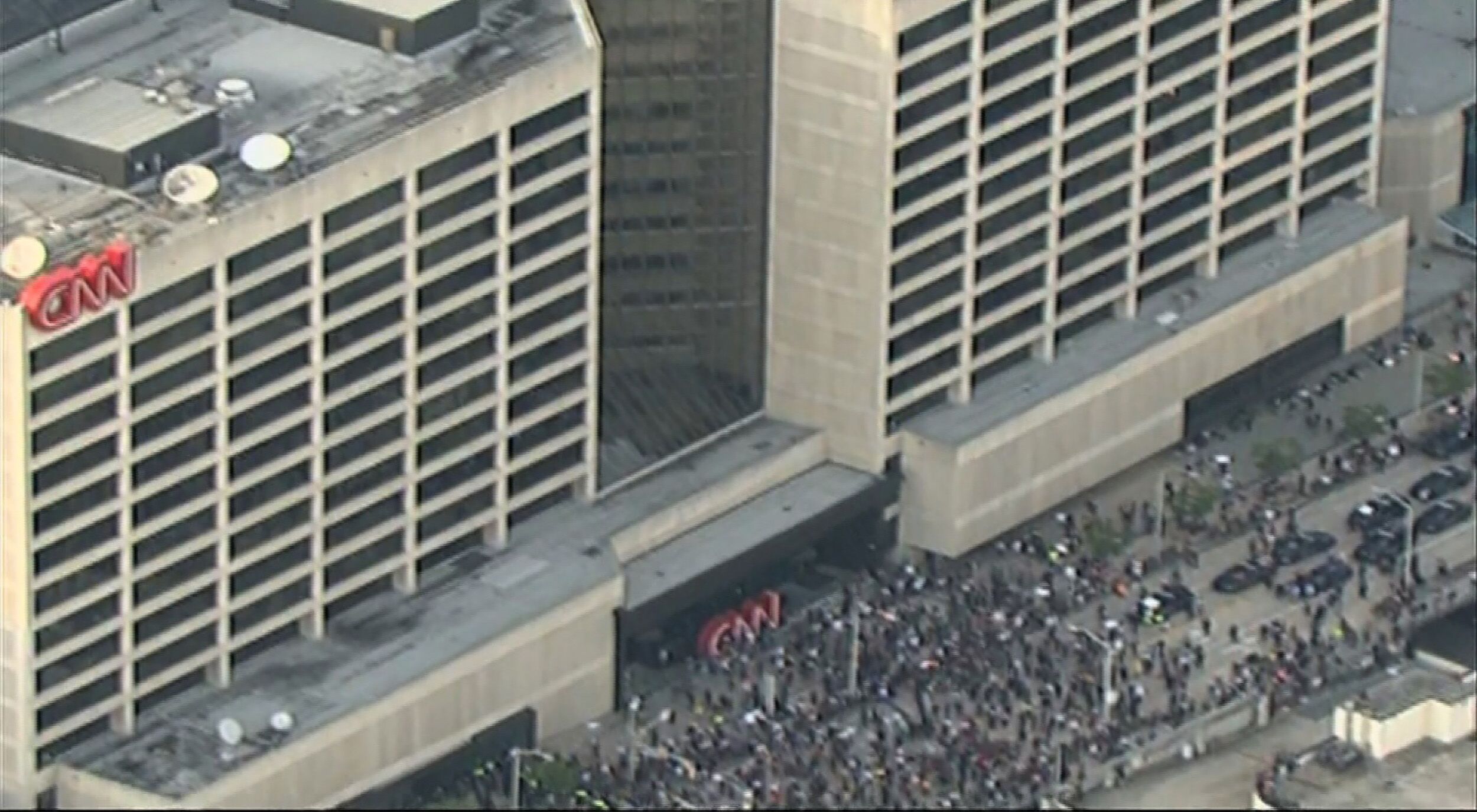 視頻顯示,部分示威者站在總部大樓前的CNN標志上,揮舞著印有“黑人的生命也是命”(Black Lives Matter)的旗幟,另外一些示威者則在CNN標志上用噴漆塗鴉。報道還稱,示威者們在CNN中心外焚燒了一面美國國旗,並打碎了大樓入口處附近的玻璃。