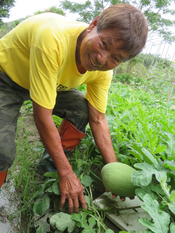 梁日信手中的西瓜到7月中會大了幾倍,市民到時摘瓜會感到分量十足。