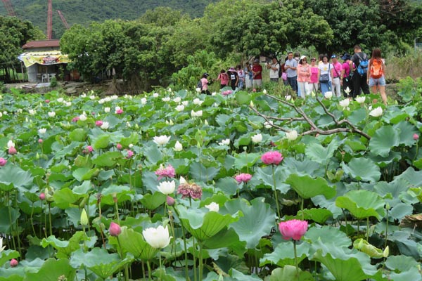 炎夏荷花盛放,遊人排隊等候靚位打卡。