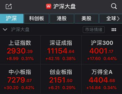【香港商报网讯】两市集体高开,沪指涨0.31%,深成指涨0.38%,创业板指涨0.29%。