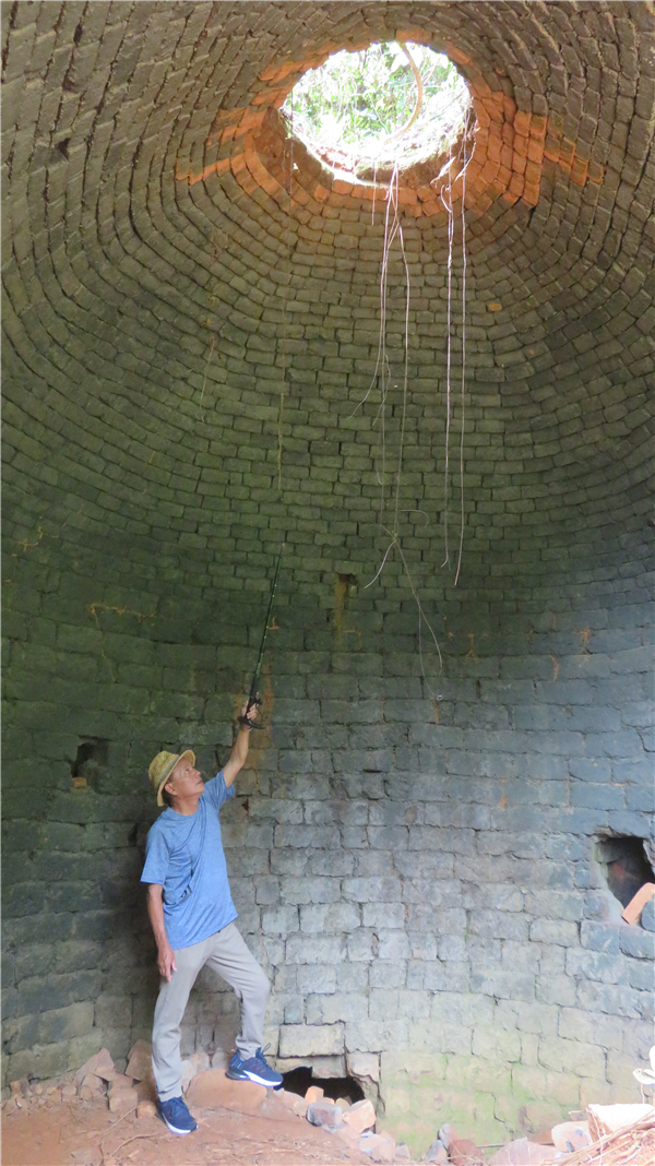 瓦窰入口比人還高,窰頂被草叢佔據。