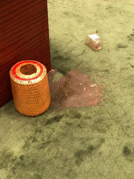有建制議員拍下被投擲的物品,當中疑有昆蟲在其中,十分嘔心。