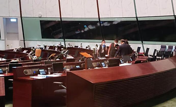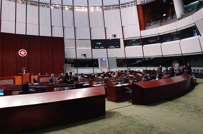 【香港商報网訊】記者林駿強報道:立法會今日上午繼續審議《國歌條例草案》,反對派議員的21項修正案全數被否決后,議案進入三讀程序。不過,反對派繼續用各種方法「拉布」及搗亂,并在會議廳內投擲有臭味的液體,導致會議暫停。有警員及消防員到場調查。