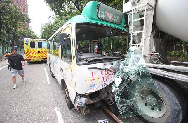 小巴車頭嚴重損毀。