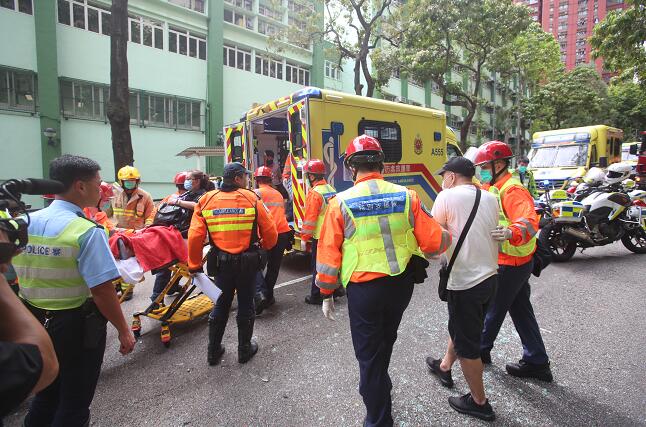 傷者由救護員攙扶上車。