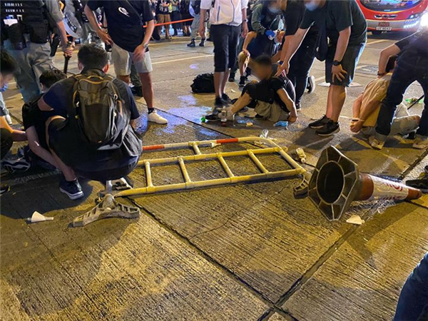 警方表示,昨晚上約9時,旺角亞皆老街近砵蘭街有黑衣人不顧路上正在行駛的車輛,突然衝出馬路,以圍欄及雪糕筒等雜物堵塞多條行車線。有人在車龍之間穿梭行走,險象環生。